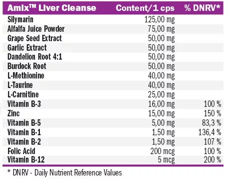 Az AmixTM Liver Cleanse egy egyedülálló gyógynövénykivonatok és vitaminok komplexe, amelyet kifejezetten az AmixTM fejlesztett ki az egészséges májműködés támogatására és fenntartására.