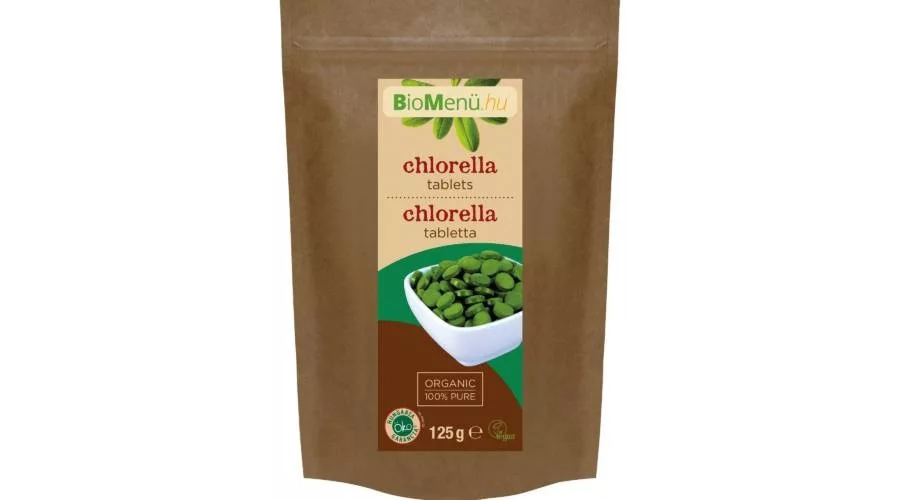 Az édesvízben tenyésző egysejtű chlorella algát szűrt vizű, természetesen tavakban szaporítják, betakarítás után kíméletesen, párologtatással szárítják, végül porrá őrlik. Ezt követően a legszigorúbb gyógyszeripari standardnak is megfelelő, hűtött berendezésekkel, tapadást elősegítő hozzáadott anyagok nélkül préselik tablettaformákba, így megőrzi eredeti hatóanyagait. A könnyen emészthető por számos biológiai kötésű vitamin, ásványi anyag, aminosav, rostanyag és klorofill természetes forrása. Egy adag BioMenü CHLORELLA tabletta koncentrált tápanyagtartalma egyenértékű egy felnőtt adag zöldsaláta menüével. Stimulálhatja az immunrendszert, javíthatja a belek működését, védheti a sejteket a szabadgyökökkel szemben és támogathatja a szervezet detoxikációját. Pozitívan hathat a sejtregenerálódásra, valamint a sebek gyógyulási folyamataira, erősítheti továbbá a stresszel szembeni ellenálló-képességet és tompítjhatja a testszagokat. A chlorella elsősorban a gyomor, a lép, a vastagbél, a máj, az epehólyag, a szívburok egészséges működését segítheti, valamint a szervezet energetikai pályáit harmonizálhatja.