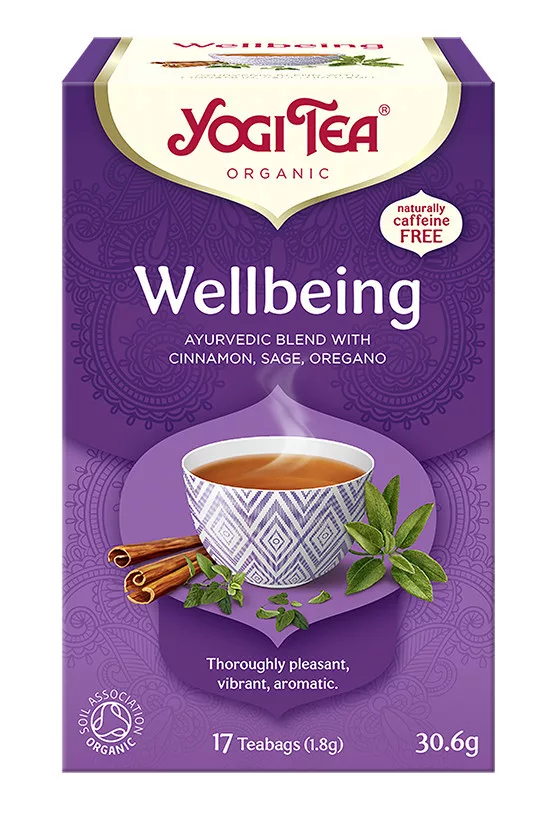 Tea azok számára, akik pihenni szeretnének. A jóllét érzésének megtapasztalásához az első lépés, hogy igényünk legyen rá. Ez a YOGI TEA® Jó közérzet tea egy kellemes kikapcsolódáshoz vezet: melengető fahéjjal és aromás zsályával íze akár egy relaxáló mediterrán stílusú pihenés. Megérezheti az élet ízét az indiai citromfű és az oregánó harmóniájában, melyből inspirációt és ihletet meríthet.