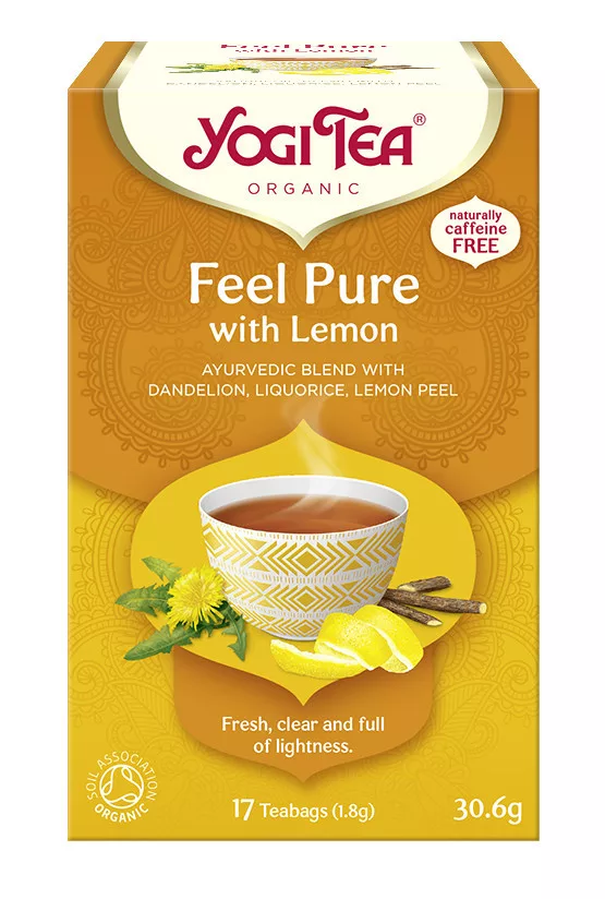 BIO Tisztító méregtelenítő tea citrommal gyermekláncfűvel Yogi Feel Pure