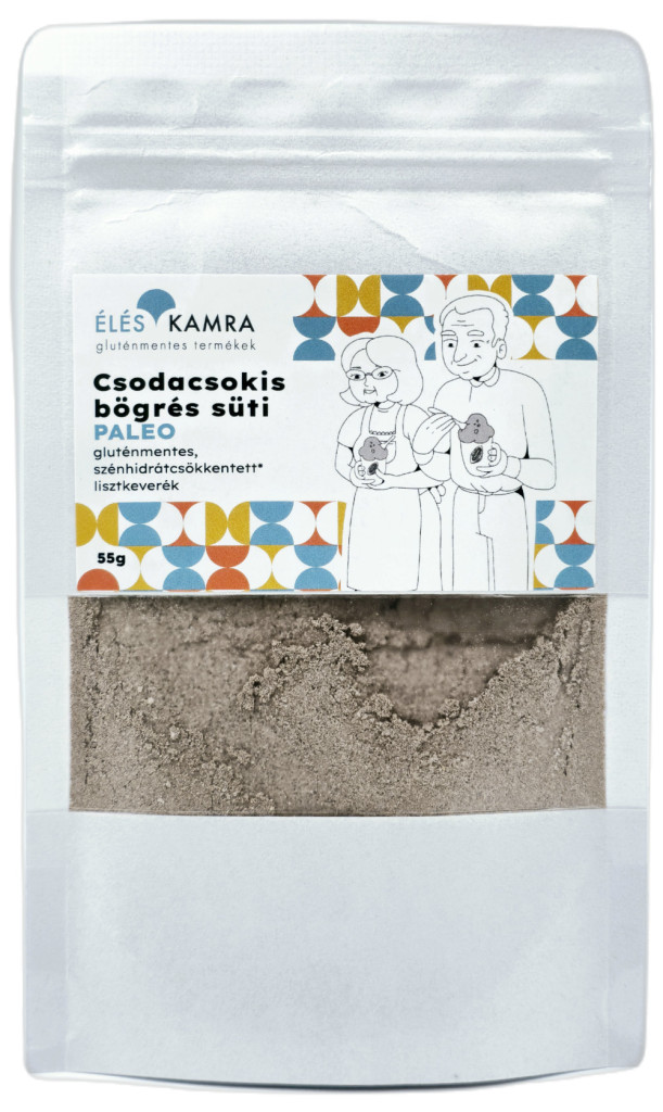 A keverékben a finomabb ízvilág elérése érdekében a szúrós ízű szódabikarbóna helyett a saját fejlesztésű Paleolit Éléskamra foszfátmentes sütőport használjuk.