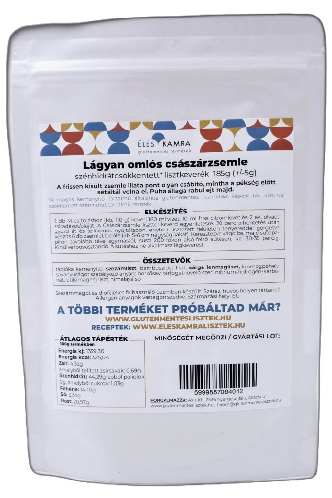 • 1 csomag Éléskamra Lágyan omlós császárzsemle szénhidrát csökkentett* lisztkeverék