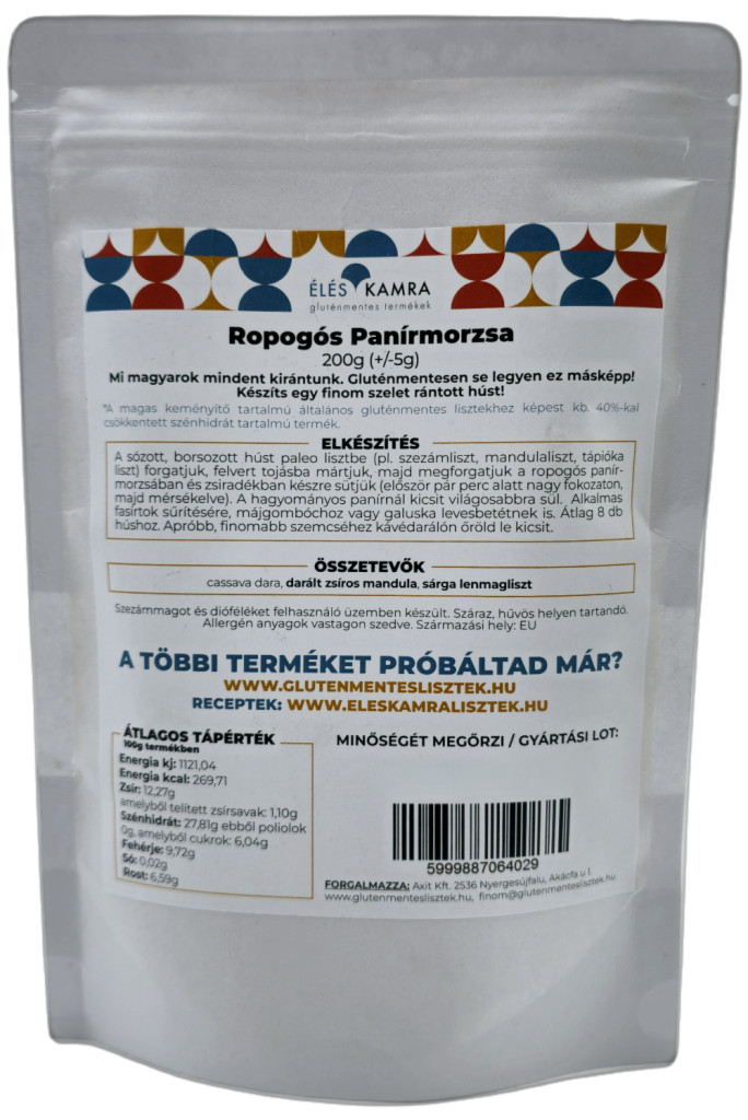 Kiváló minőségű, válogatott alapanyagokból készült paleo panírmorzsa a felejthetetlen rántott hús élményhez.