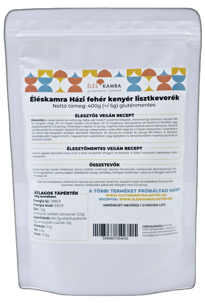 A paleos (türkiz színű) Éléskamra lisztkeverékektől időben elkülönítve kerül legyártásra, csak erre használt tiszta eszközökkel. Ezzel törekszünk a keresztszennyeződések kivédésre maglisztekkel, tojásfehérje porral. Így tudjuk garantálni a vegán alapanyagokat.