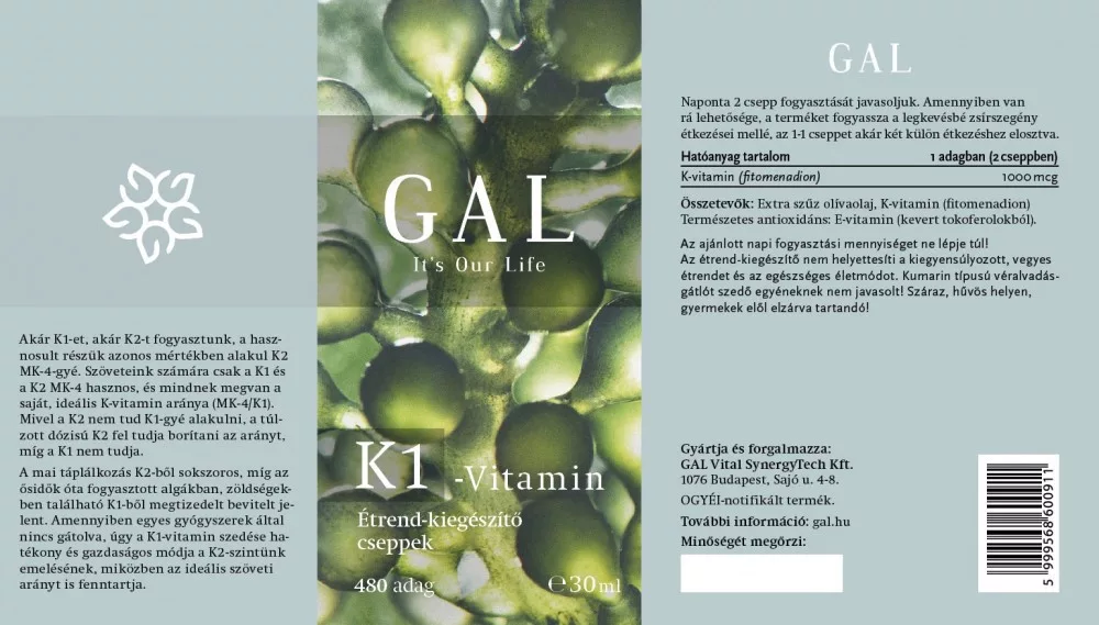 A K-vitaminnak rengeteg létfontosságú szerepe van a szervezetünk működésében, így a GAL K1-vitamint mindenkinek ajánljuk, aki egyéb forrásokból nem jut elegendő K1-vitaminhoz.