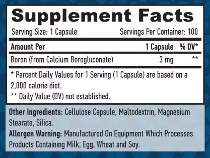 Haya Labs 100% bór 3 mg. 100 vcaps csomagban kapható, adagonként 3 mg bór. Az ajánlott adag 1 kapszula, naponta egyszer.