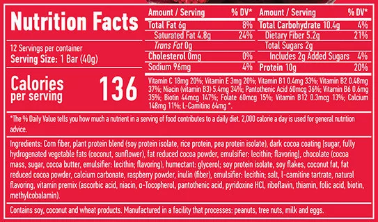 Haya Labs Vegán Protein szelet - Málnás Brownie - 12x40gr