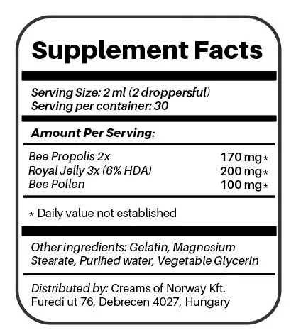 2. Propolisz: egy természetes, növényi eredetű anyag. A pollengyűjtő méhek növények, fák és rügyek mézgás felületéről gyűjtik be. A flavonoidokban gazdag propolisz a kaptár kórokozókkal szembeni belső védelmét szolgálja. Népi megfigyelésen alapuló felhasználása ennek megfelelően az immunrendszer természetes védelmét, legyengült szervezet erősítését célozza. Fogyasztását ajánljuk a szervezet immunrendszerének támogatására, a felső légutak egészségének megőrzésére.