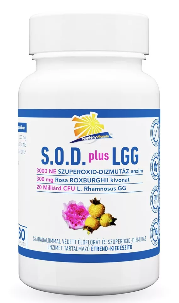 Termékünkben ötvöztük sejtjeink természetes antioxidáns rendszerének fő alkotóelemét a szuperoxid-dizmutáz enzimet (SOD) és egy az emberi mikrobiomból izolált Lactobacillus rhamnosus GG-vel megegyező szabadalommal védett élőflórát.