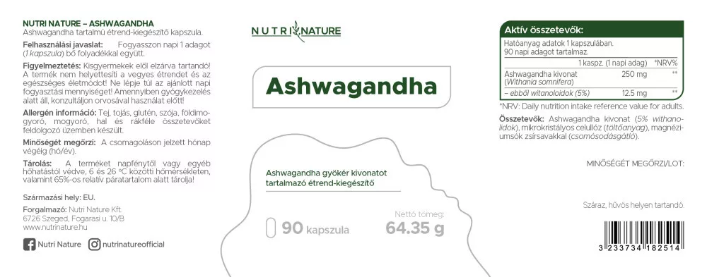 Nutri Nature – Ashwagandha tabletta – 180 adagos kiszerelés