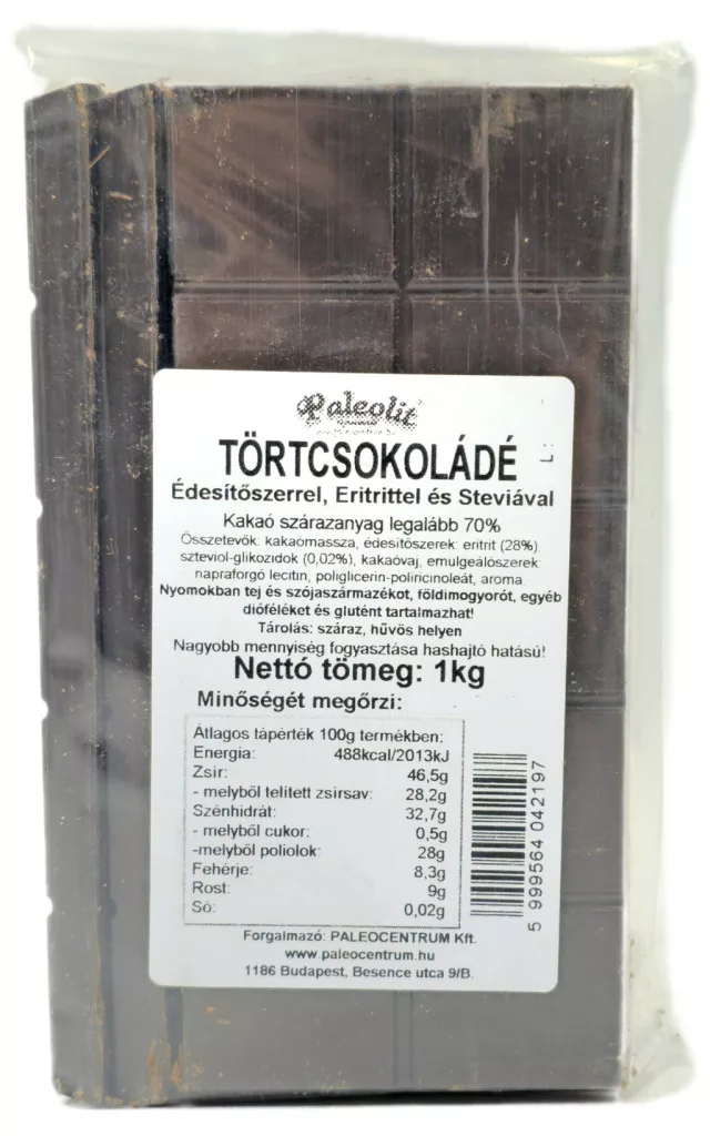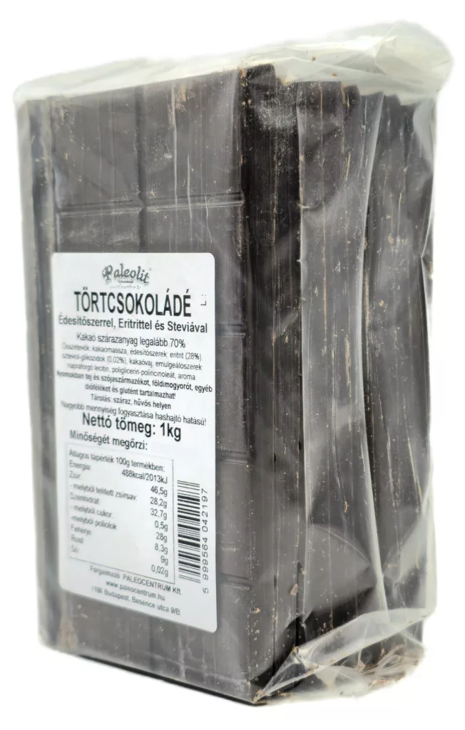 Összetevők: kakaómassza, édesítőszer: eritrit, kakaóvaj, emulgeálószer: napraforgó lecitin, aroma, édesítőszer: szteviol glikozidok. Kakaó szárazanyag legalább 70%.