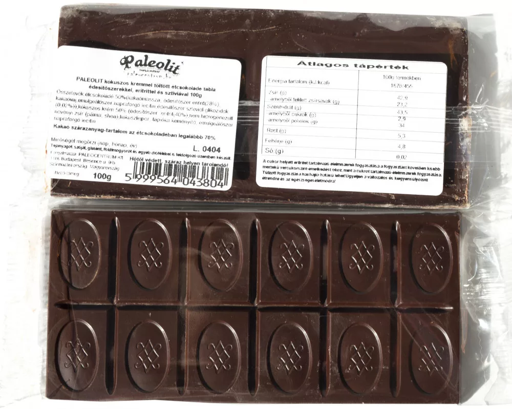 Paleolit Kókuszos étcsokoládé 100g krémmel töltve
