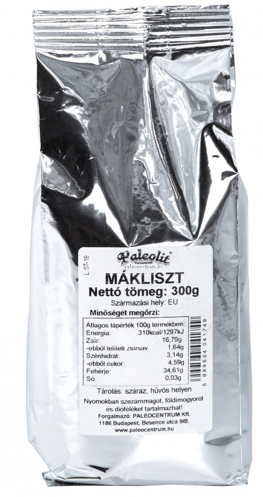 Összetétel: 100% hidegen sajtolt mák őrleménye