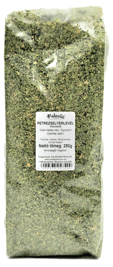 Szárított, morzsolt petrezselyemlevél.