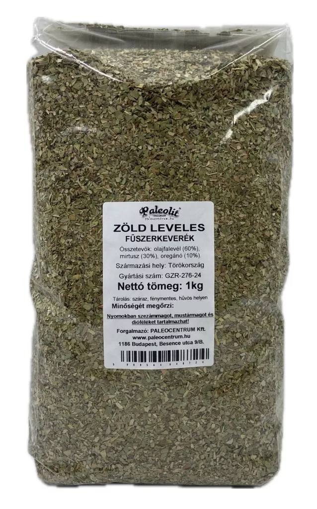 Összetevők: olajfalevél (60%), mirtusz (30%), oregánó (10%).