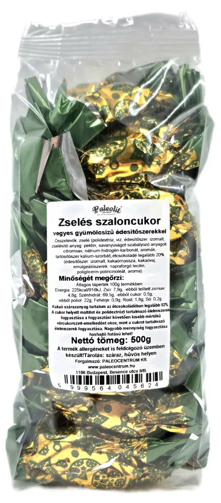 Összetevők: Összetevők: zselé (tömegnövelő szer: polidextróz, víz, édesítőszer: izomalt, zselésítő anyag:pektin, savanyúságot szabályozó anyagok: citromsav, nátrium-hidrogén-karbonát, aromák, tartósítószer:kálium-szorbát),étcsokoládé legalább 20% (édesítőszer: izomalt,kakaómassza, kakaóvaj, emulgeálószerek:napraforgó lecitin, poliglicerin-poliricinoleát, aroma).