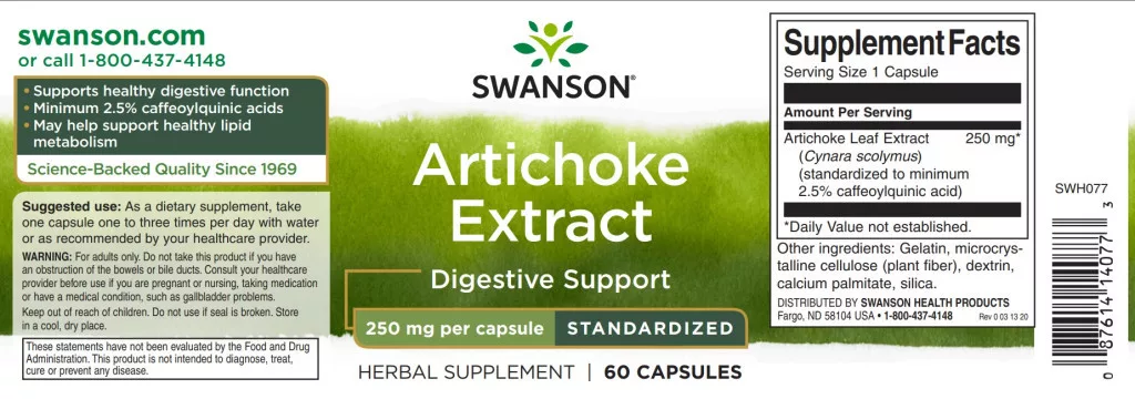 Swanson Artichoke Extract 250mg 60 kapsz (Standardizált articsóka kivonat)