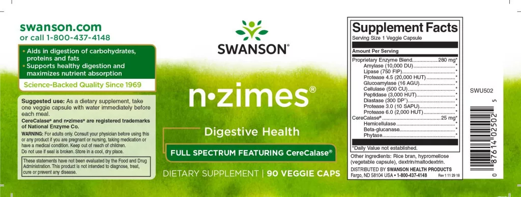 Az emésztőenzimeket régóta alkalmazzák mind a tápanyagok felszívódásának elősegítésére, mind az emésztési kellemetlenségek enyhítésére. Az olyan enzimek, mint az amiláz, a celluláz, a proteáz, stb., segítik a szervezetet a bevitt ételek lebontásában és energiává alakításában. A Swanson n*zimes-ban található hatékony keverék enyhítheti a gyomor-bélrendszeri panaszokat.