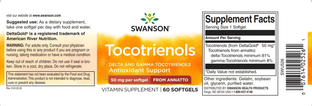 Swanson Tocotrienols 50mg (delta és gamma tokotrienolok) 60 kapszula