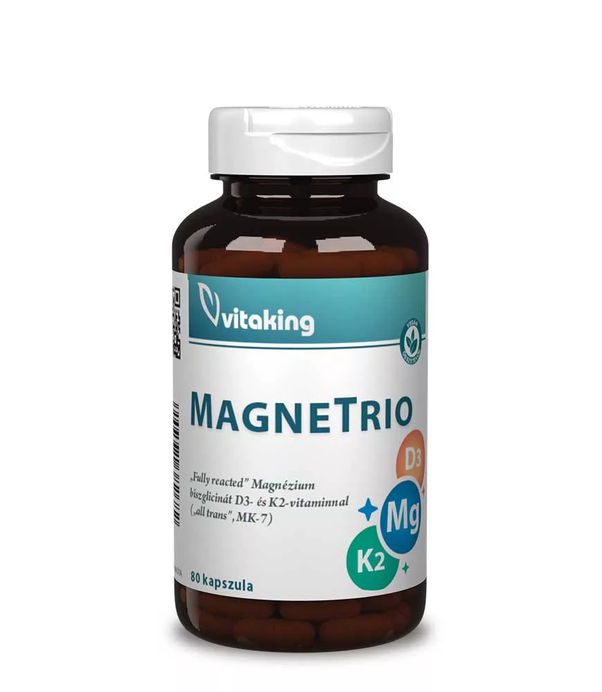 A Vitaking MagneTrio egyetlen kapszulában kiváló minőségben és nagy mennyiségben tartalmaz 3 fontos tápanyagot – magnéziumot, K2-vitamint és D3 vitamint!