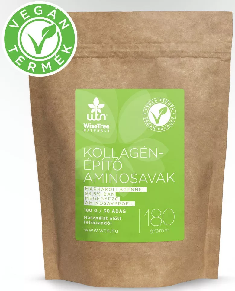 A WTN Kollagénépítő aminosavak terméke a marhakollagénben megtalálható 18 aminosav közül 17-et tartalmaz. Mivel a marhakollagénéhez nagyon hasonló az aminosav profilja, ezért hatásában is nagyon hasonló. A fő előnye pedig az, hogy nem tartalmaz hormonokat és azok bomlástermékeit!