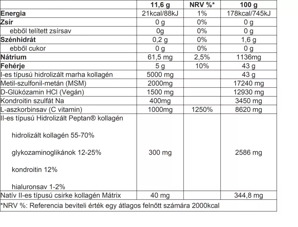 • elérhető kutatási adatokkal a konkrét alapanyagra vonatkozóan, nem pedig általánosságban a kollagénre és egyéb összetevőkre.