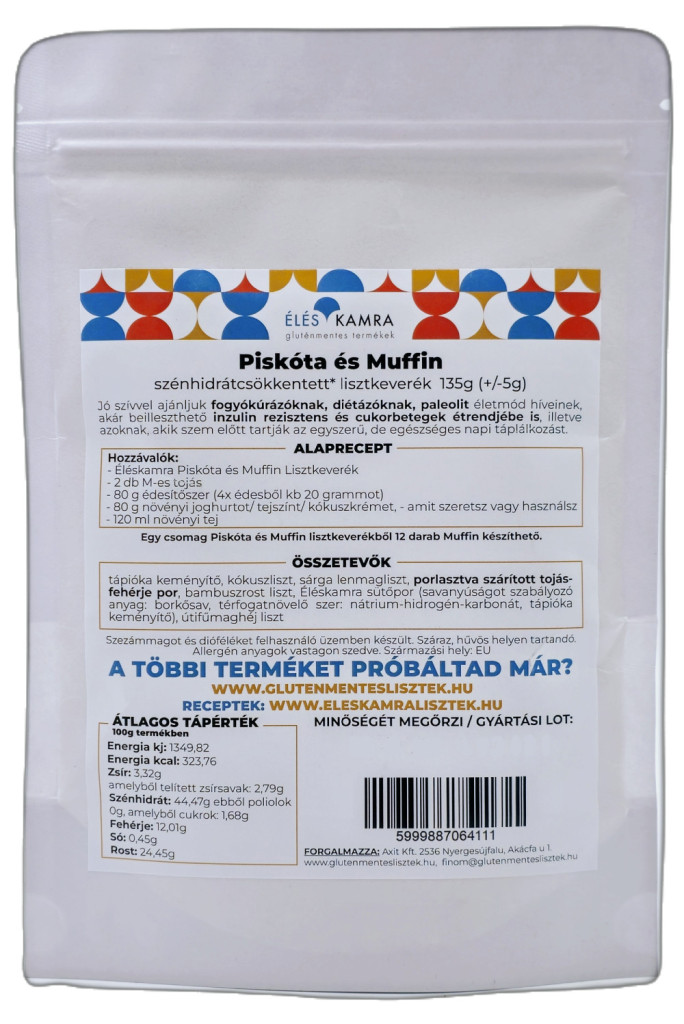 • 1 csomag Éléskamra Natúr Piskóta és Muffin Gluténmentes Lisztkeverék