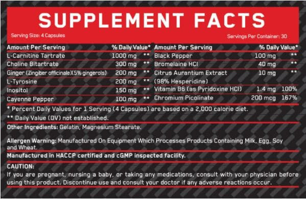A formula kulcsösszetevője az L-karnitin L-tartarát, amely a legstabilabb és legjobban hasznosuló L-karnitin forma. Emellett megtalálható benne gyömbér kivonat, kapszaicin (csípős paprika), heszperidin, L-tirozin és fekete bors kivonat (piperin). Ezek az összetevők célzott hatással bírnak az anyagcsere, a zsírlebontás, a regeneráció és a koncentráció támogatására.